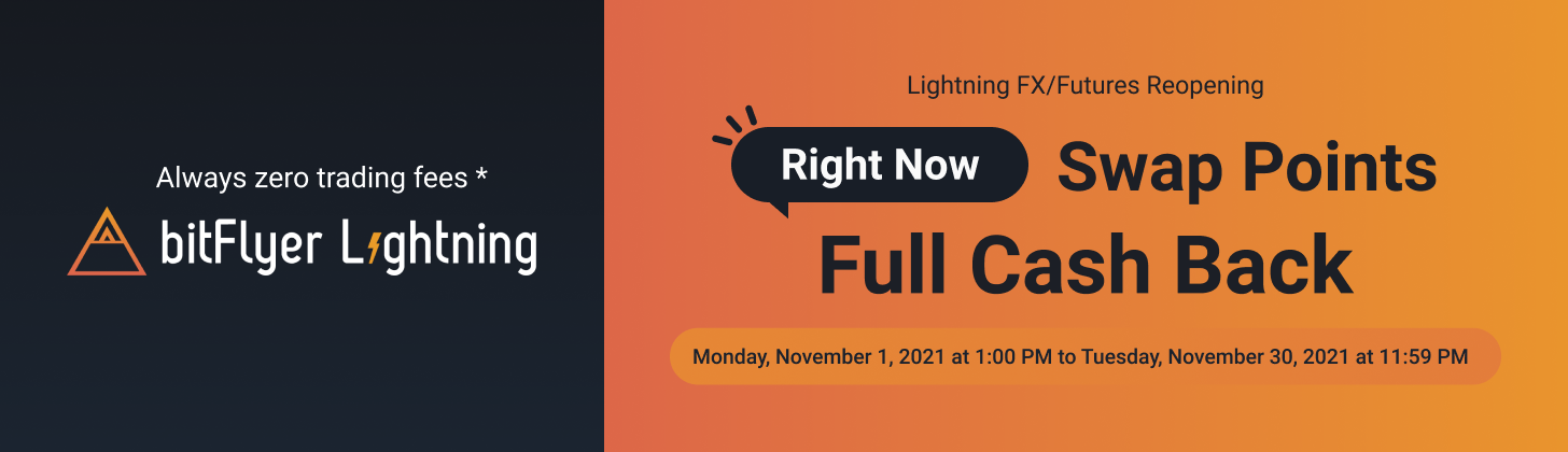 bitFlyer,Inc. is pleased to announce that we have been registered as a Type I Financial Instruments Business under the Financial Instruments and Exchange Act as of October 14, 2021. In view of this, we accepted new applications from customers for our cryptocurrency margin trading services (Lightning FX and Lightning Futures), which are classified as OTC derivative transactions under the Financial Instruments and Exchange Act, from November 1.