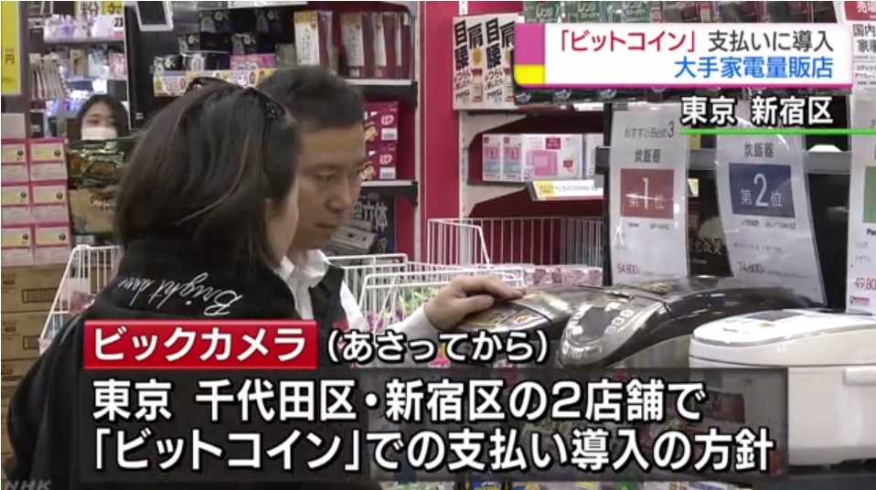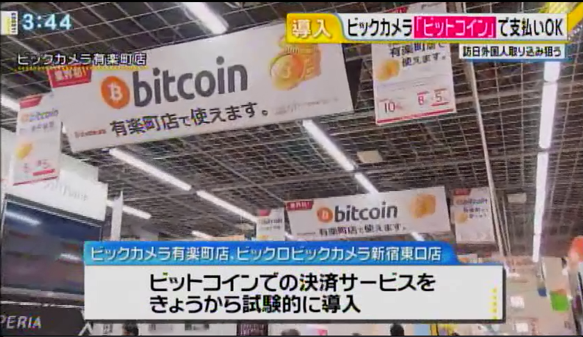 NHK「おはよう日本」で当社とビックカメラの取組が紹介されました インターネット上の仮想通貨、ビットコインの利用が国内でも増える中、大手家電量販店のビックカメラが東京都内の一部の店舗で支払いの手段として、導入する方針を固めました。 関係者によりますと、ビックカメラは東京・千代田区と新宿区の2店舗で、7日からビットコインで支払いができるようにする方針を固めました。 2017-04-05
