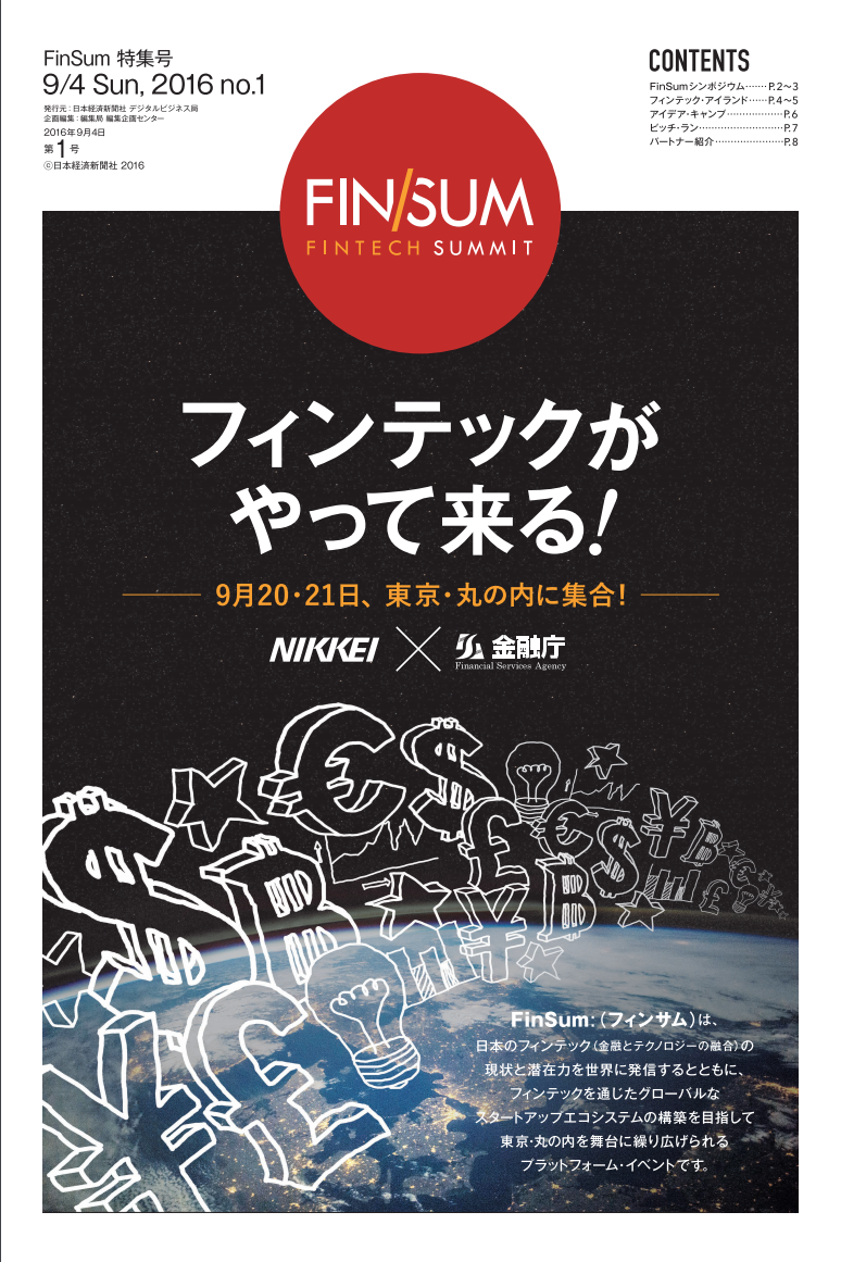 経済産業省主催のFinTech研究会に加納が参加します。 代表の加納が10月16日に開催される経済産業省主催のFinTech研究会に参加します。加納が参加する第2回目の会合では、Fintechに携わるプレイヤー・有識者11名が参加し、「FinTechは日本に新たな産業を生み出すのか」をテーマに議論が行われる予定です。 2015-10-07