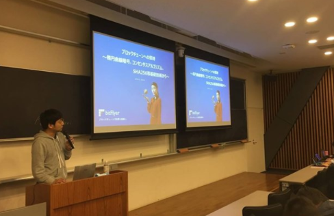 当社代表加納が「ブロックチェーンへの招待 ―楕円曲線暗号、コンセンサスアルゴリズム、SHA256等基礎技術から―」をテーマに東京大学大学院工学系研究科で講義いたしました ■テーマ(Theme): ブロックチェーンへの招待 ―楕円曲線暗号、コンセンサスアルゴリズム、 SHA256等基礎技術から― Introduction to blockchain ―From the basic, elliptic curve cryptography, consensus algorithm, SHA256 etc― 2018-04-18