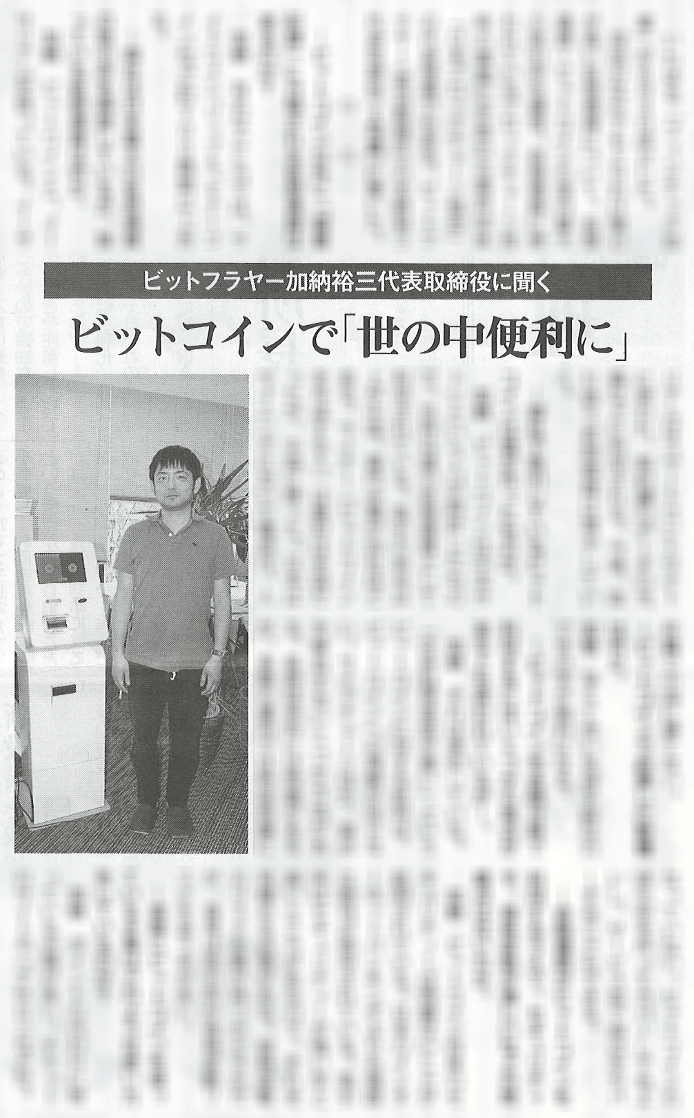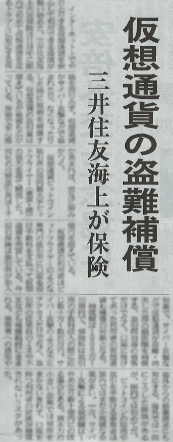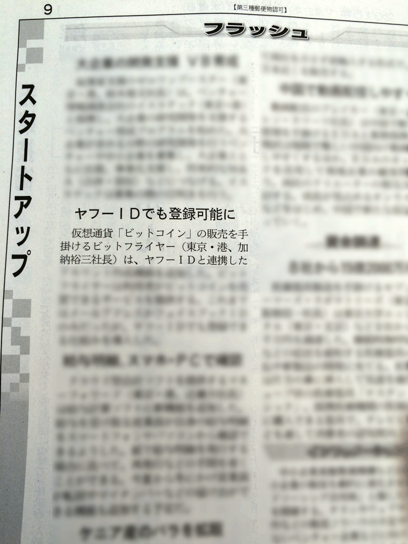 日本経済新聞『ビットコイン取引所規制案、本人確認導入の公算大 資金洗浄対策を優先』において、弊社の経営の透明性、信頼性を高める取組に関する記事が掲載されました。 ビットコインなどの仮想通貨の規制に向け、金融庁、警察庁などの法整備議論が大詰めを迎えた。 2015-11-16