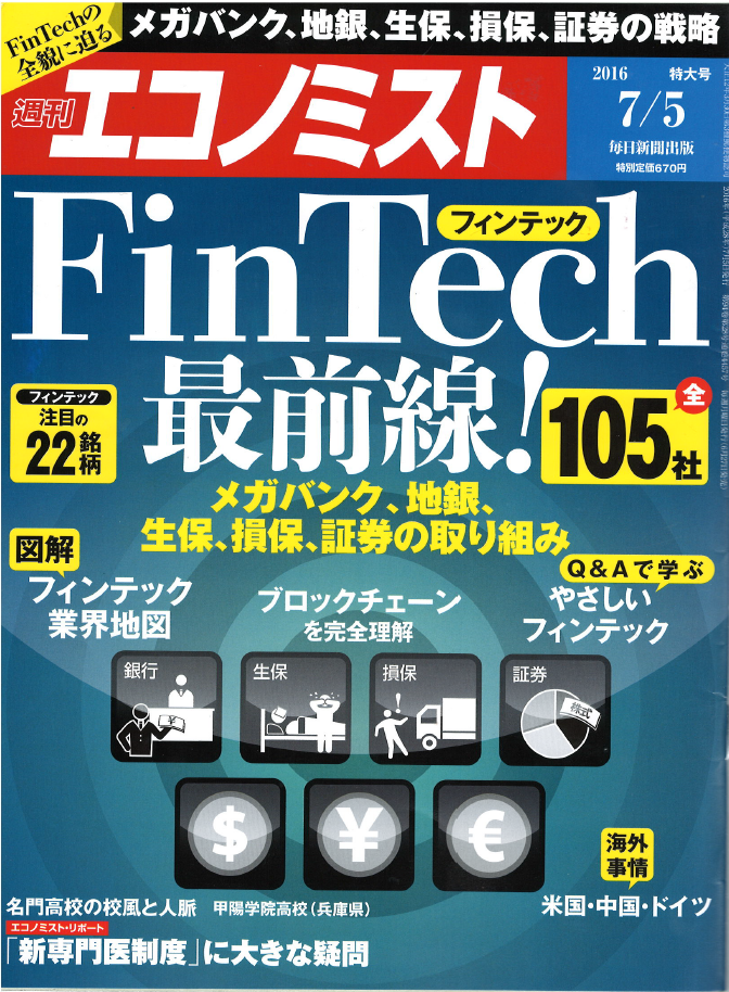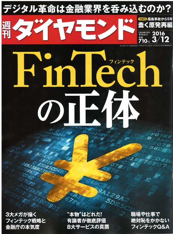 週刊ダイヤモンド3/12号、「FinTechの正体」において弊社加納のコメントが掲載されました フィンテックを主な8分野に絞り、有識者がそれぞれのポテンシャルやインパクトを5つの指標で定量評価する特集において、加納が「有識者」の一人としてコメントしました 2016-03-07