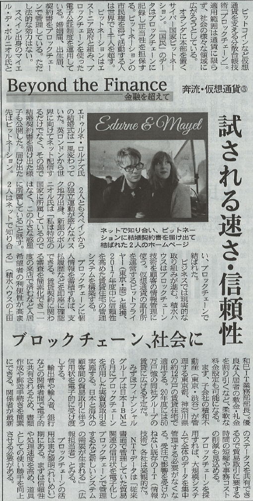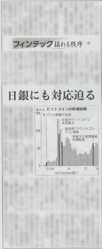 日本経済新聞『フィンテック 揺れる秩序㊥』で、弊社の記事が掲載されました 日銀も重い腰をあげた。16日に公表した決済システムリポートで初めてフィンテックを取り上げ「基本的には歓迎すべき動き」と指摘。17日に開く決済システムフォーラムでは仮想通貨やブロックチェーンを取り上げる。 2016-03-17