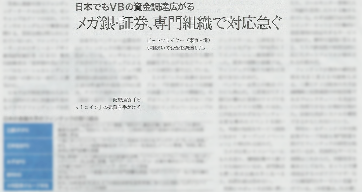 日経ヴェリタス「日本でもVBの資金調達広がる メガ銀・証券、専門組織で対応急ぐ」で弊社の資金調達が取り上げられました。 クラウド会計のfreeeや仮想通貨「ビットコイン」の売買を手がけるビットフライヤーが相次いで資金調達を実施した。 2015-11-30