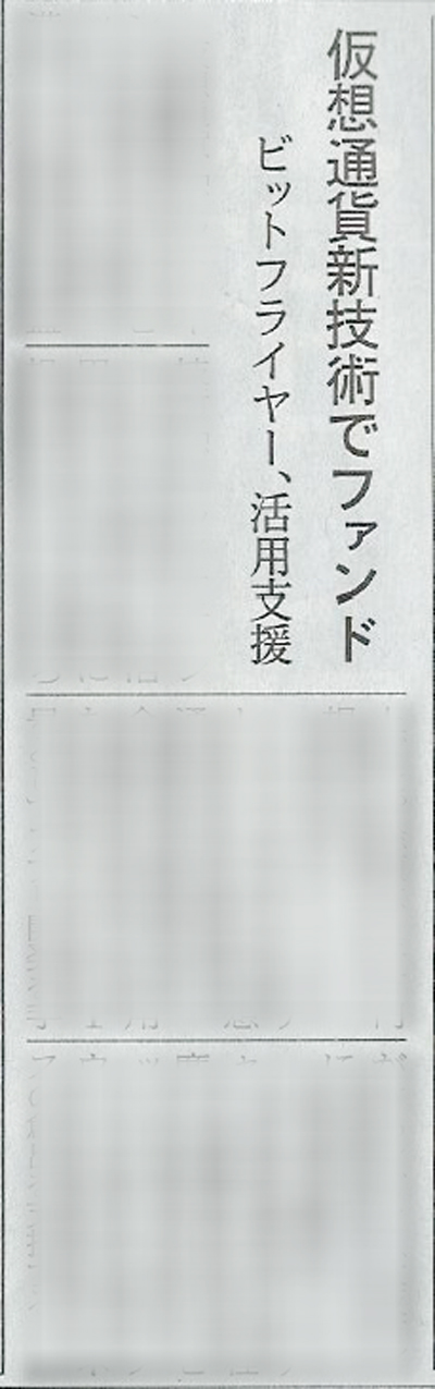 日本経済新聞『仮想通貨新技術ファンド ビットフライヤー、活用支援』において、弊社の記事が掲載されました 仮想通貨「ビットコイン」の売買を手がけるビットフライヤーは、仮想通貨の基盤技術「ブロックチェーン(デジタル台帳)」を活用するベンチャー企業に投資するファンドを立ち上げた。総額は5千万円規模になる。 2016-01-25