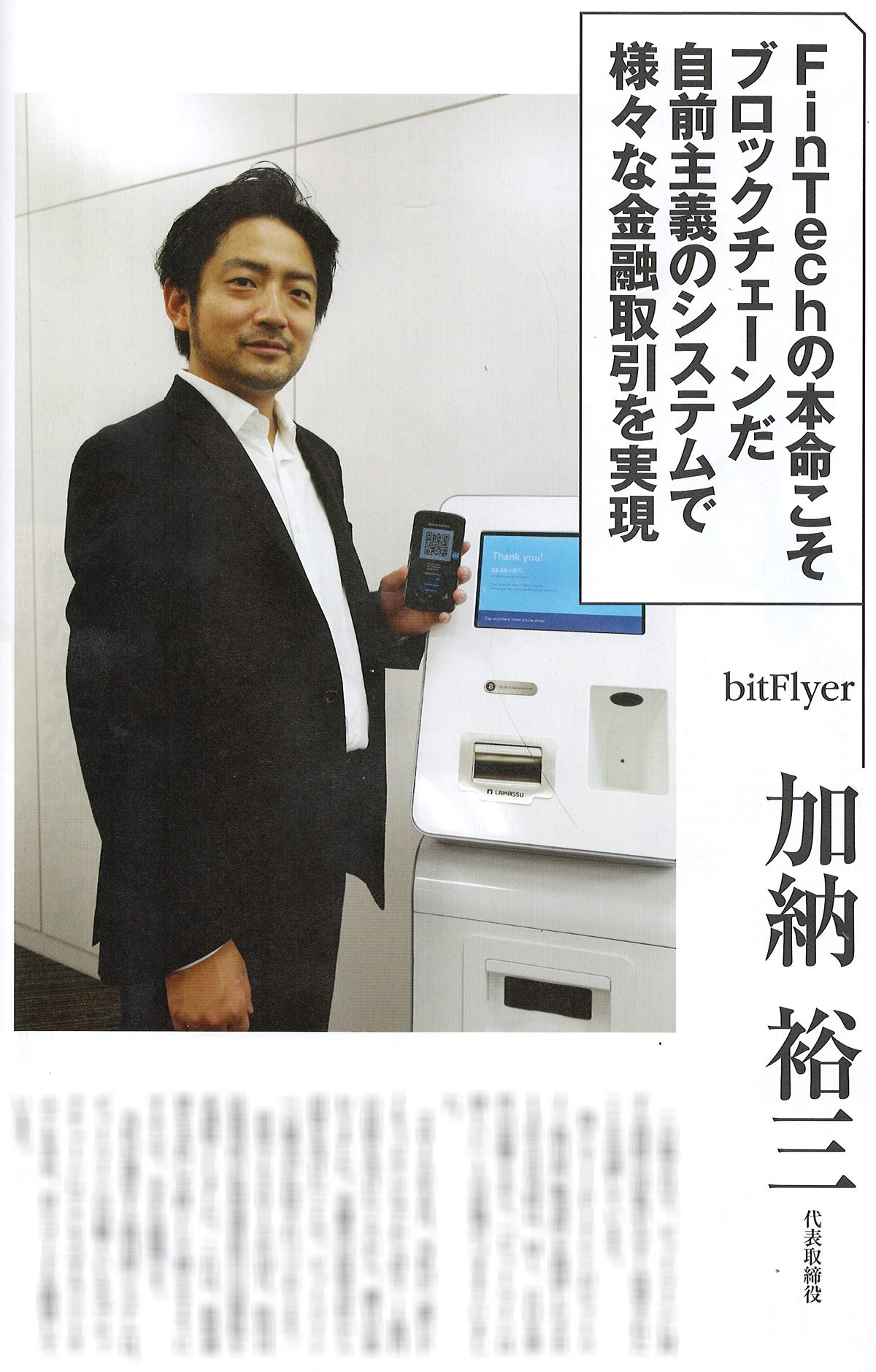 社長名鑑「株式会社bitFlyer ~ビットコイン/ブロックチェーンの雄が語る、世界変革の一手~」で当社代表加納のインタビューが掲載されました 世界で戦えるベンチャーを目指し、躍進を続けるbitFlyer。創業時から貫き続ける思いの裏側に迫る。 2018-02-06