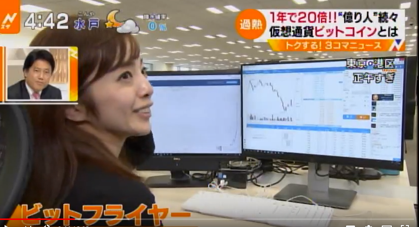 テレビ東京 ワールドビジネスサテライトで当社の様子が放送されました 今年1年で爆発的に高騰した「ビットコイン」。販売・取り引きする「ビットフライヤー」は、事務所を大型オフィスビルに移転するなど急成長した。激しい値動きのため、投資対象としてのビットコインからは手を引いたという利用者も。一方で、仮想通貨中心の生活となり人生が変わったという利用者もいる。 2017-12-25