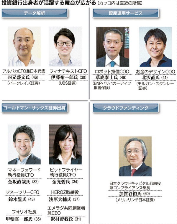 日経ヴェリタス「フィンテック支える投資銀人脈 変革チャンスをつかめ」で弊当社金光が紹介されました 金融業界を変えようという企業は多く、一般社団人フィンテック協会(東京・港)への加盟数は右肩上がりで増えている。高い理想や志、新しいアイデアで事業チャンスはつかめても、それだけでは事業にならない。金融事業を推し進めるには海外企業との交渉や契約締結、企業統治(ガバナンス)などの実務を担う参謀が不可欠で、投資銀行からの実務組の活躍が光る。 2017-03-12