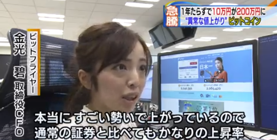 テレビ東京ゆうがたサテライトで当社CFO金光のインタビューが放送されました 手元にあった10万円が1年で200万円にまで増えたらどう思いますか? 元のお金が20倍に増えたわけですが、このような現象が実際に買い物もできる仮想通貨の世界で起きています。 「バブル」とも言われているいま、いったい何が起きているのでしょうか。 2017-12-13